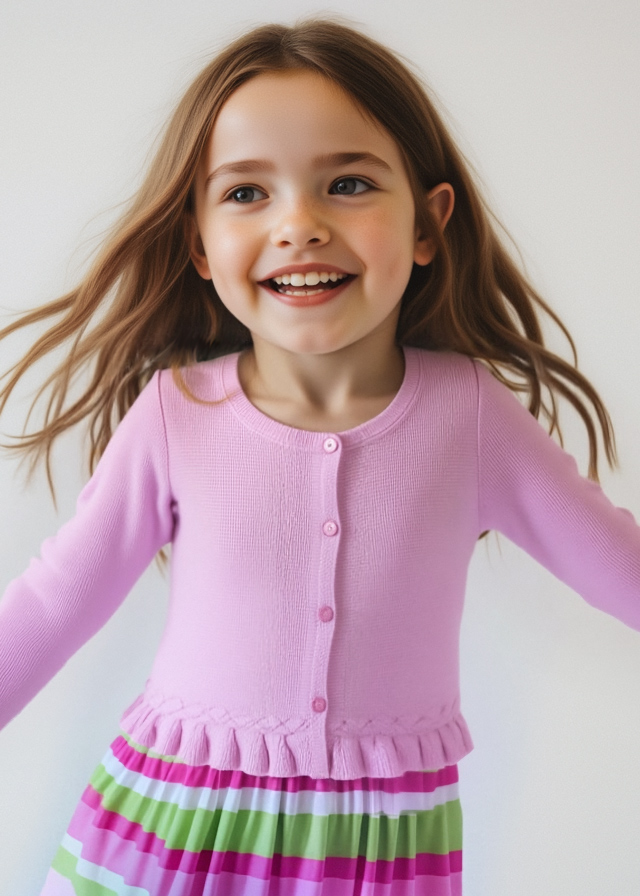 Sweterek z długim rękawem dla dziewczynki. Okrągły dekolt.